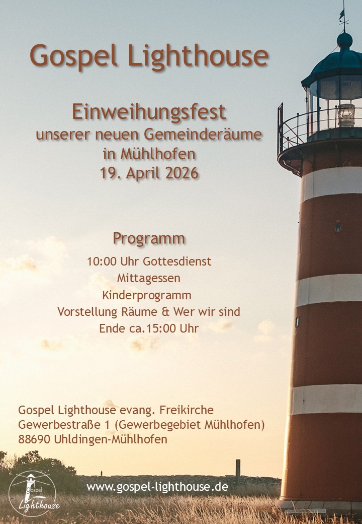30. NovemberGottesdienst um 10:00Uhr in unseren neuen Räumen: Gewerbestraße 1 88690 Uhldingen-Mühlhofen